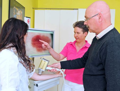 Auch beim Hautscreening haben sich neue technische Möglichkeiten der Bildbetrachtung und Bilddokumentation durchgesetzt (FotoFinder). Die Betrachtung auffälliger Male mit der vierzigfach vergrößernden Lupe ist mittlerweile Standard in jeder Hautarztpraxis. Man kann heute aber auch Hautmale, die beobachtet werden müssen, mit digitaler Fotografie und Bilddokumentation so aufnehmen, dass eine exakte Verlaufskontrolle möglich ist. Diese Technik bieten wir auch in unserer Praxis an. So ist es möglich, in manchen Fällen eine vorsorgliche operative Entfernung von Malen zu vermeiden. Leider werden die Kosten dafür von den gesetzlichen Kassen bisher nicht übernommen.